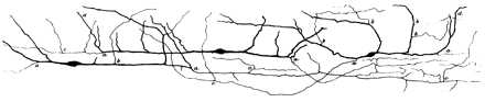 Cajal-Retzius cells are a class of neurons present in the cerebral cortex during development. These glutamatergic cells are presumed to be involved in the early organization of areas of the developing cerebral cortex, and are are eliminated through cell death during early postnatal stages.