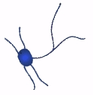 Golgi cells are large inhibitory interneurons scatterered throughout the granular layer of the cerebellum, with axons extending into the molecular layer. The majority of Golgi cells use both GABA and glycine as neurotransmitters, although a single Golgi cell will differentially mediate GABA to granule cells and glycine to unipolar brush cells.