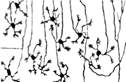 Basket cells are GABAergic (inhibitory) interneurons found in the cortex and cerebellum, which form a dense, basket-like plexus of terminals around the soma of their target cells. Basket cells appear to mediate a form of local lateral inhibition.
